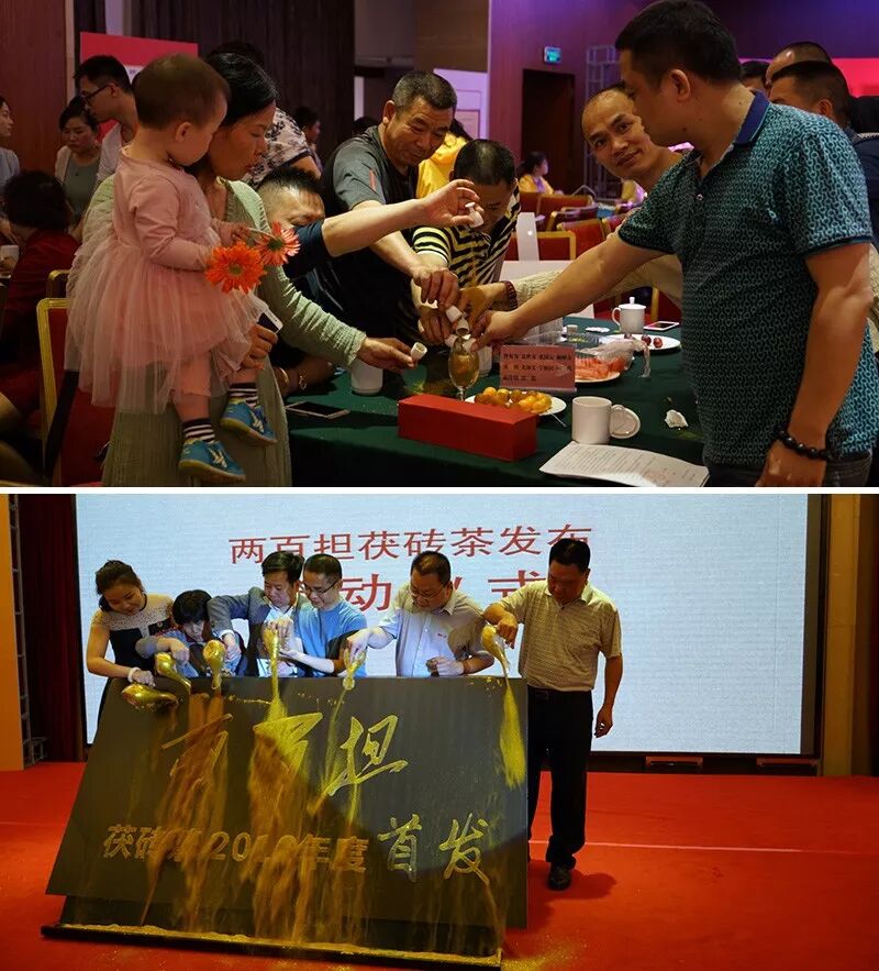 在相关部门领导,行业内专家,茶文化宣传推广专业机构的关心之下。两百担茯砖茶首发仪式正式启动。启动仪式以金沙汇聚的形式进行,寓意这款金花满布的两百担茯砖茶,必能取得满意的成绩。