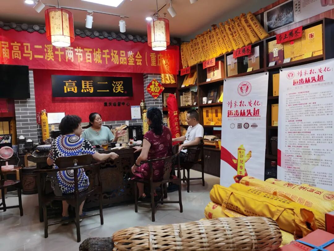 秋日午后,重庆的高马二溪新老茶人相聚在高马二溪重庆专卖店(重庆市江北区大石坝九村茶市B51号),聆听高马二溪悠久的文化历史,分享交流高马二溪千两茶的醇厚底蕴与其优良品质,以品鉴交流的形式还原200多年前的那一场帝国精英的茶会。