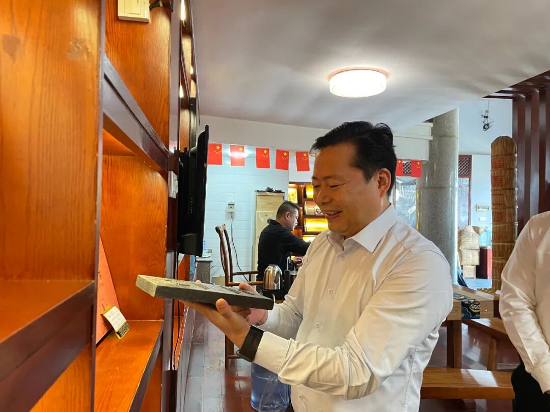 公司总经理李宏光详细介绍了公司茶园基地建设、产品制作工艺、产品特点特色及线上直播开展情况等,熊书记一行边看边听,并与公司总经理李宏光交流了今年公司的生产经营情况及高马二溪边销茶的储备情况等