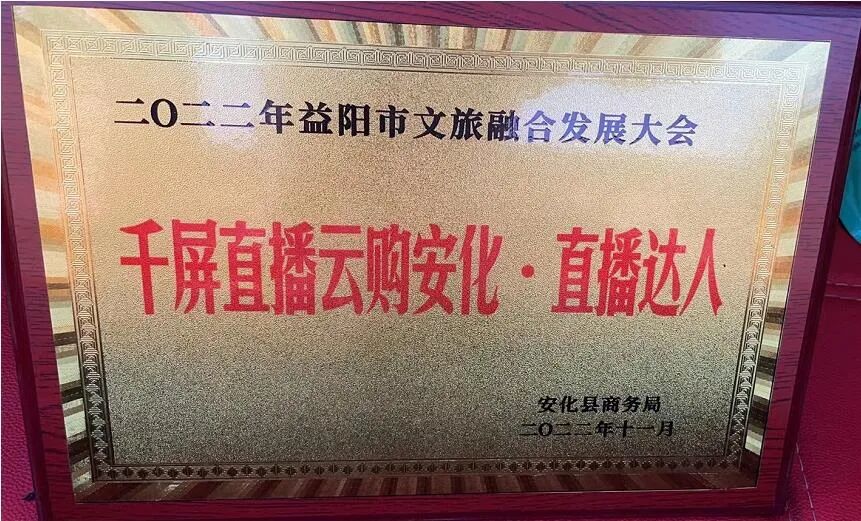 (获得2022年益阳市文旅融合发展大会千屏直播云购安化·直播达人称号)