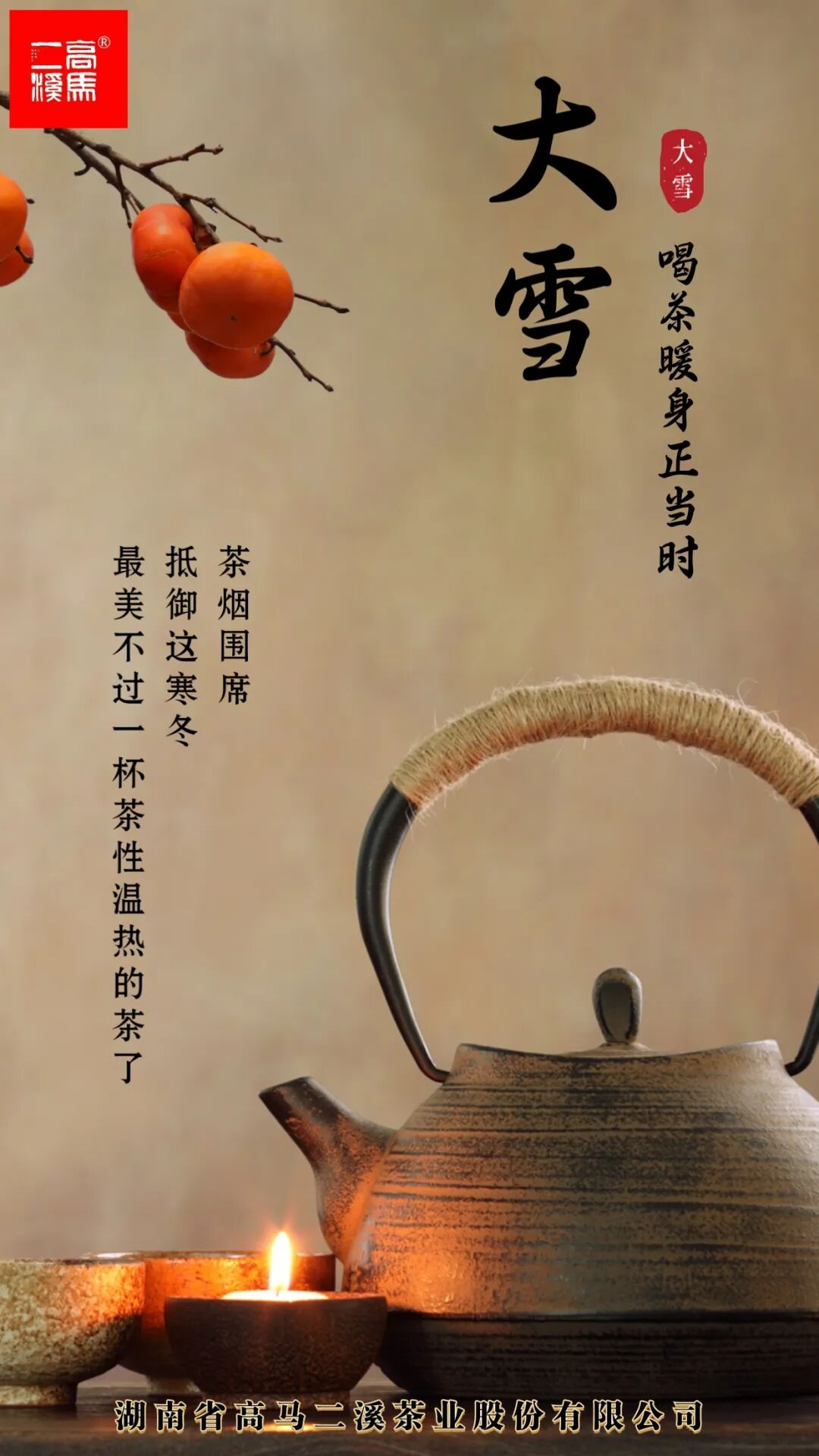 茶,渗透和融合了自然与中国文化的精华,在历史演变中,安化黑茶作为边疆少数民族人民的生命之饮,现在更成为当下都市人民的健康之饮,常饮安化黑茶,不仅是在喝茶,更是一种健康的生活方式。每个季节都有适合的茶叶来相配,喝茶也是保持健康的好方式之一。大雪已至,天生好原料的高马二溪黑茶,你准备好了吗?